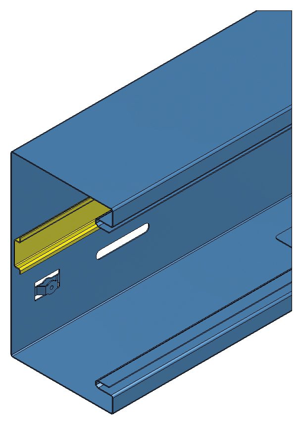 Canal d'allège 4183 200x115 mm avec rail DIN 35 - En tôle d'acier galvanisée. Ouvertures en bas.