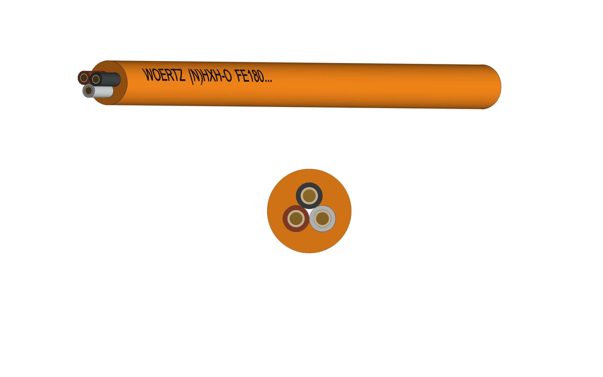 Cable Woertz (N)HXH-O FE180 E90 3x1,5mm2 0,6/1,0kV Naranja, clase de comportamiento al fuego: B2ca s1a d0 a1